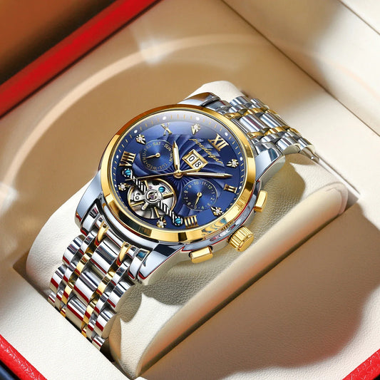 Luxury Automatic Mechanical Watch Tourbillon Waterproof Luminous Date Week Men Wristwatch Stainless Steel Men's Watches